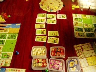 参加者の方が持ってこられた「ボーナンザ」です。 豆畑運営ゲームです。 交渉しだいで、儲かります。 |