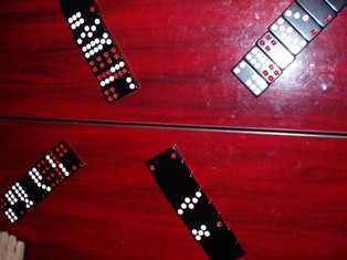 参加者の持ってこられた「チェーテン」です。 天九牌のゲームです。 くるくると繋げていきます。 |